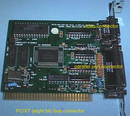Here is a typical Dual Mode Video card used in the last generation of PC/XT type computer. This card could operate in CGA or MDA video modes.