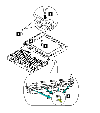 Loosen the three screws 2 , and push 3 to release the four top cover latches at the rear side of the system unit.