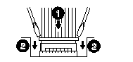 Remove the center latch 1 ; then remove the rear connector door by flexing it 2.