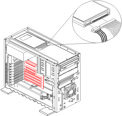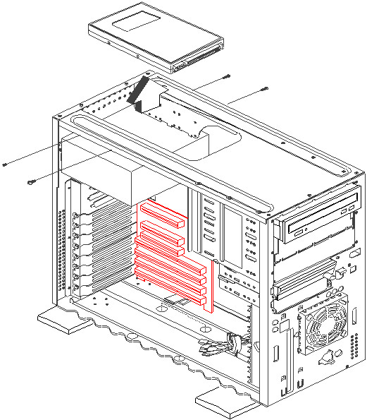 - Position a hard disk drive over bay 6 such that the signal and power connectors face the front panel.
