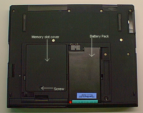 2.) Close the LCD, turn the computer over and then remove the battery pack.