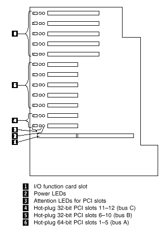- PCI slots 11 and 12 are on PCI bus C (bus numbers 0 and 1, with bus numbers 2 and 3 reserved for adapters that require bus number assignments).