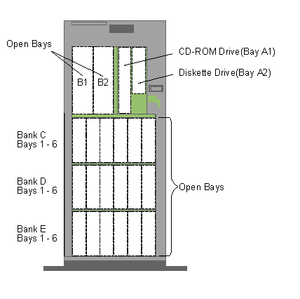 PC Server 720 - Bays / controls / connector locations