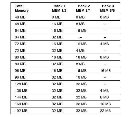 These are the recommended combinations of memory-module kits. Each bank must contain a matched pair of SIMMs having the same size and speed.