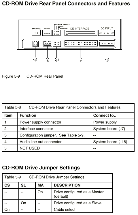 Aptiva - 2156 CD-ROM jumpers and connectors