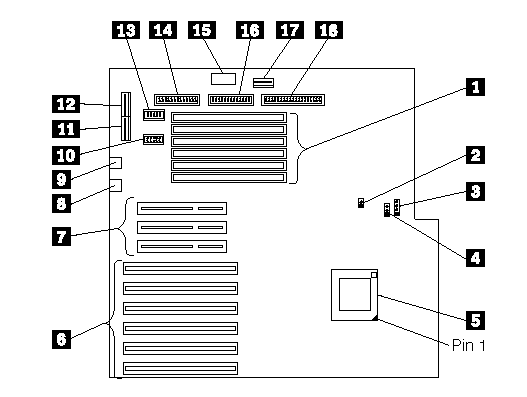 PC Server 300 - Pentium System Board Location Diagram
