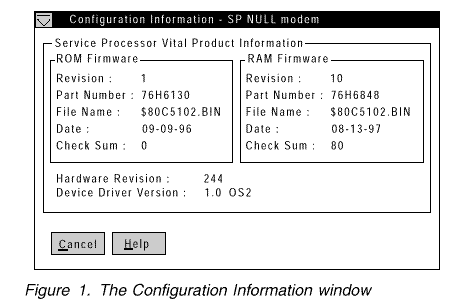 Configuration Information: The Configuration Information window (shown in Figure 1) contains detailed information about the system management subsystem, including RAM microcode, ROM microcode, and device-driver information.