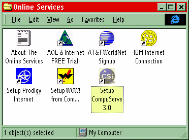 NOTE: If you have an Aptiva model 2134/2144/2168/2176/2159, CompuServe is already installed on your computer. Open the IBM Information Superhighway icon, open CompuServe and skip to Step 2 -- Setup the Modem