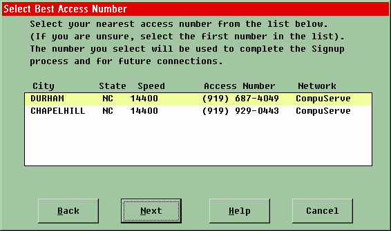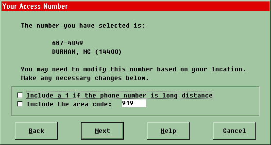NOTE: Please ensure that the number you select is local. Your phone company's normal line charges will apply.