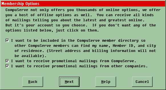 You are now a Member of CompuServe. Please read the membership and billing information. Note the customer service number for future questions. Click Next to continue.