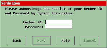 Please enter your Member ID and Password for confirmation. If you did not write it down in the previous step, click Back. Click Next.
