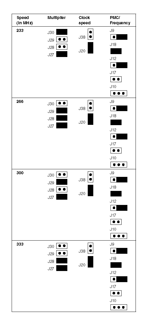 Processor core frequency selection jumper (Jumpers are installed on J27 and J30; |