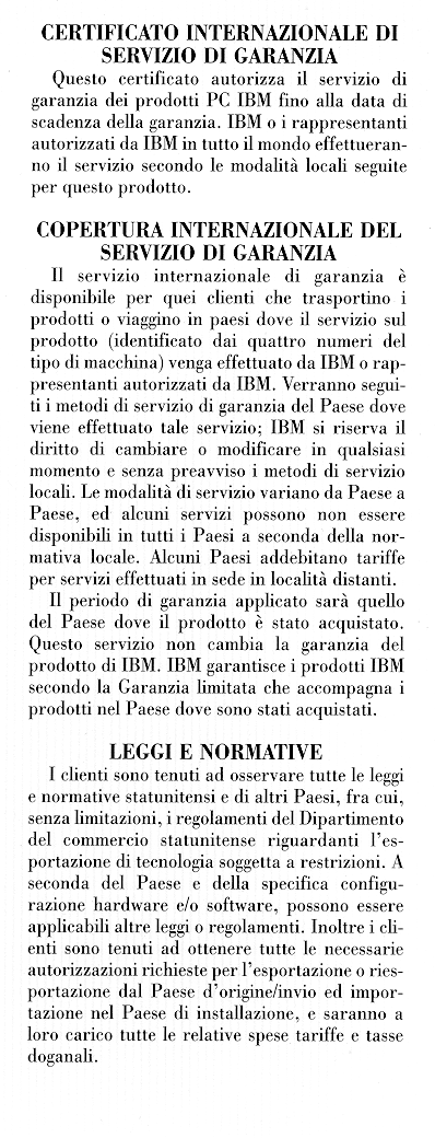 International Warranty Service Terms And Conditions (Italian)