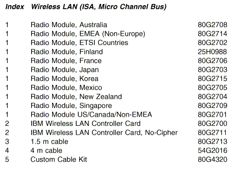 Wireless LAN Adapter (ISA, Micro Channel Bus):