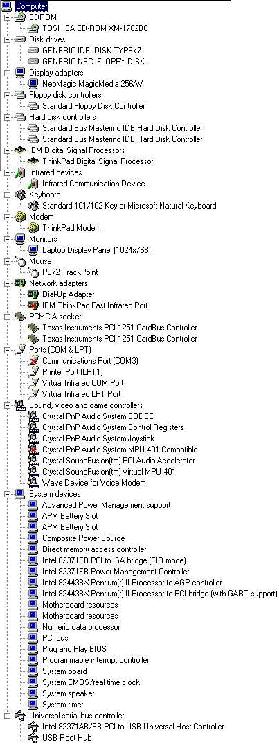 This is the default listing of Device Manager under Windows 98 from a United States preloaded system: