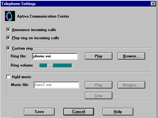 Aptiva - Default settings for the Aptiva Communication Center