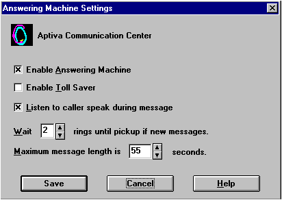 3. Next click on "Answering Machine". Refer to Figure #3 for the default settings.