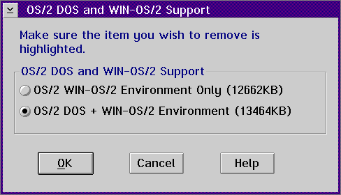 Note: When uninstalling Win-OS/2 support you are also removing all drivers installed for Win-OS/2 sessions. This includes Mwave adapter, sound card, modem, and printer drivers. These drivers should be reinstalled after Win-OS/2 support is reinstalled.