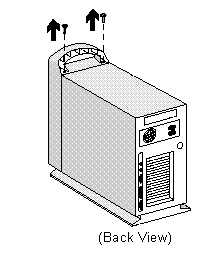 6. On tower models 2168, 2176, remove the cover by unscrewing the the two screws behind handle, grab the handle and pull cover toward front of computer.