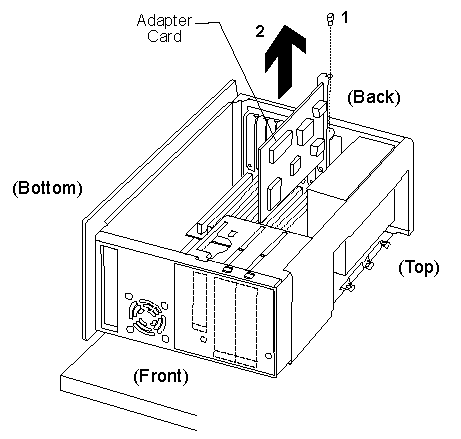 12. Reseat the riser card as follows: (The riser cards plugs into the mother board of the system and has the sockets for all the adapters.) Remove all other cardsas above. Remove the screw at the bottom of the riser card. Remove and reinsert or reseat riser card, making sure that it is pressed firmly into slot. Inspect connections for damage.