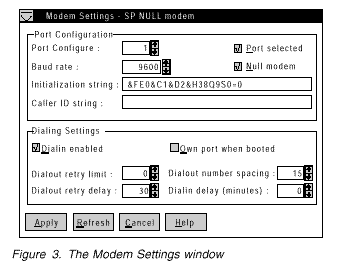 The Port Configuration Group: Use the Modem Settings group to specify and configure the modem that will be used to forward the alert when a System Management Subsystem Dialout Event occurs. The Port Configuration group contains the following items.