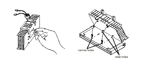 The Pentium II processor module with holes on one side to hold the clips of the heat sink and fan. The upper set of holes (near the latches) on the processor are wider and should match the wider ends of the clips on the heat sink. The lower set of holes are smaller and should match the narrow ends of the heat sink clips.