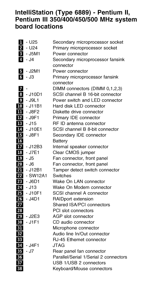 IBM IntelliStation M Pro (Type 6889) - Pentium II , Pentium III 350/400/450/500 MHz System Board