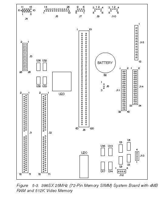 PS/1 - System Board Layout 386SX 25MHz, 4MB RAM, 512K VM