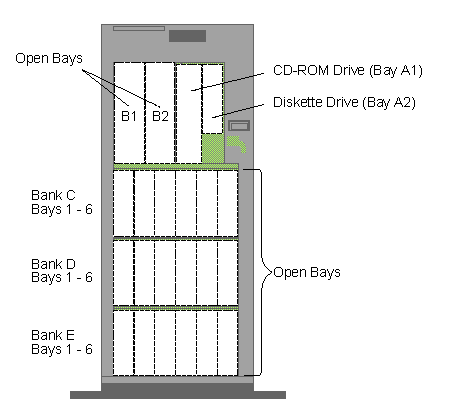 PC Server 520 - Expansion bay locations