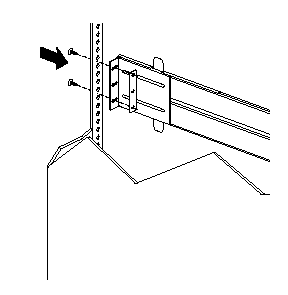 c. Insert two screws (M6 by 16 mm) through the mounting rail, slide-bracket assembly, and nut bar. Do not tighten the screws.