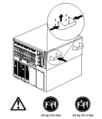a. Press in on the sides of the lift handle near the tabs and insert the handle tabs into the slots on the sides of the server.