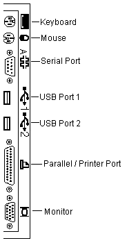 Parallel Connector: A signal cable for a parallel device, such as a printer, connects here. |