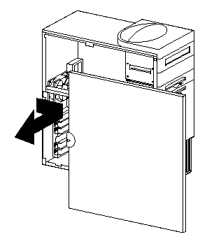 - Modem/Mwave card - There is one screw on the side of the card holding it in place. Remove this screw and pull the card straight out. The following diagram illustrates how to remove an Mwave or any adapter card.