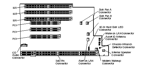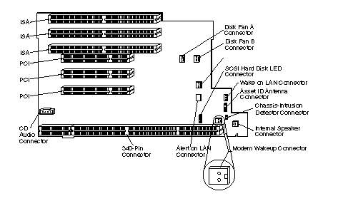 ISA and PCI Adapters: The server uses a riser card for expansion. The riser card contains expansion slot connectors that connect adapters to the industry standard architecture (ISA) and peripheral component interconnect (PCI) buses.