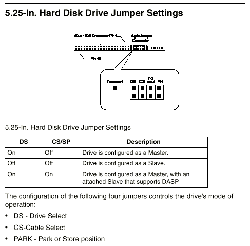 Aptiva - 2158/2163/2164 Hard drive jumper settings