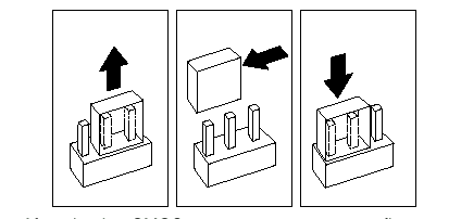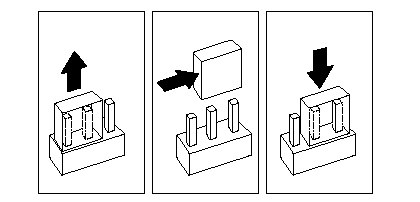 2. Move the jumper from its normal position (pins 1 and 2) to pins 2 and 3. It might be helpful to use needlenose pliers to move the jumper, but be careful not to crush the jumper or to scrape any system-board components.