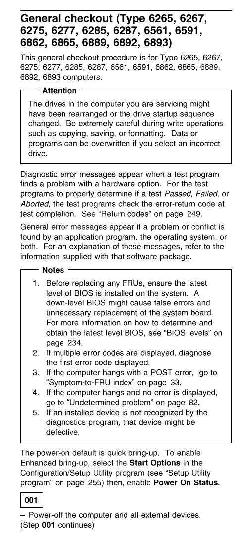 IBM IntelliStation/IBM PC - General Checkout (Type 6265, 6267, 6275, 6277, 6285, 6287, 6561, 6591, 6862, 6865, 6889, 6892, 6893)