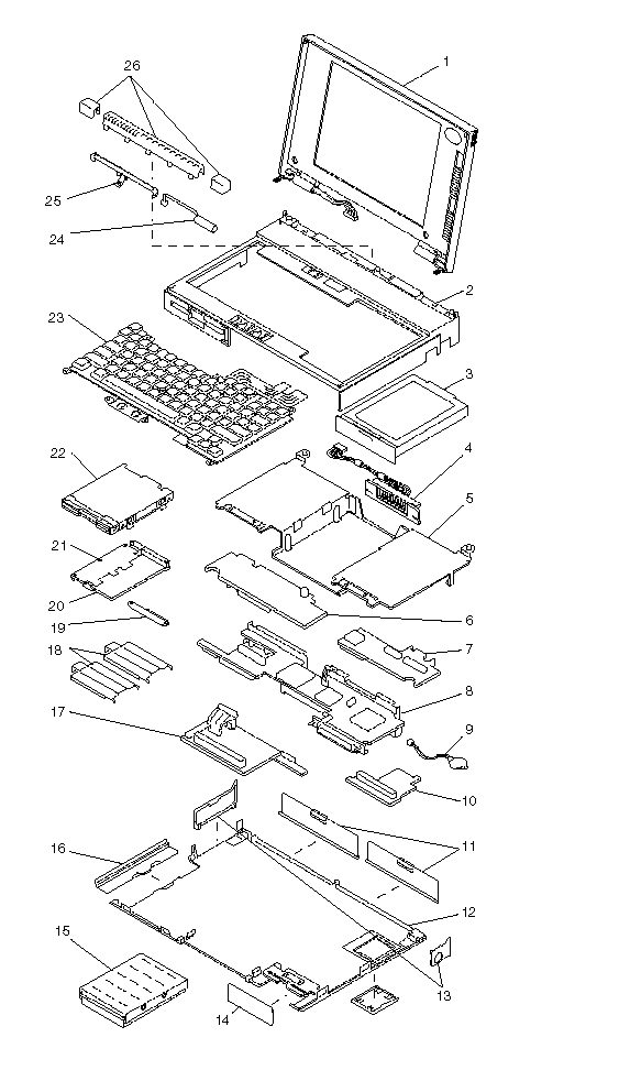Parts Group includes keyboard support bracket, DC-in holder, battery terminal clip, stud, |