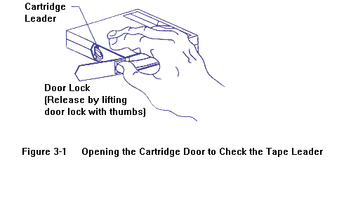Caution: Do not touch exposed portions of the magnetic tape. If the tape leader is not in the correct position, use a new cartridge.