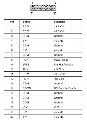 IBM IntelliStation/IBM PC - 20 pin main power supply connection