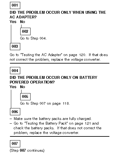 If the status lights match either condition A or B, replace the voltage converter. If the status lights are different from condition A or B, or replacing the voltage converter does not correct the problem, go to żUndetermined Problem—.
