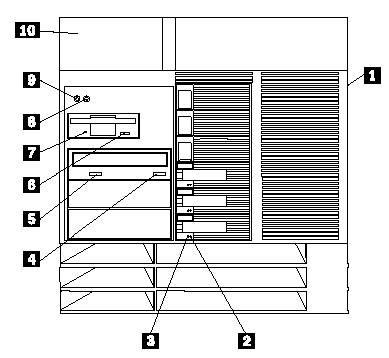 2 Hard Disk Status Light: Each of the hot-swap drive bays has a Hard Disk Status light. When this amber light is on continuously, the drive has failed. When the light flashes slowly (one flash per second), the drive is being rebuilt. When the light flashes rapidly (three flashes per second), the controller is identifying the drive.