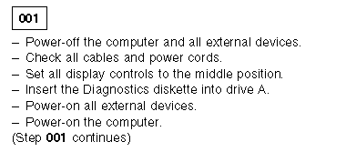 Notes: 1. Before replacing any FRUs, ensure the latest level of BIOS is installed on the system. A down-level BIOS might cause false errors and unnecessary replacement of the system board. For more information on how to determine and obtain the latest level BIOS, see BIOS Levels. 2. If multiple error codes are displayed, diagnose the first error code displayed. 3. If the computer hangs with a POST error, go to Symptom-to-FRU Index. 4. If the computer hangs and no error is displayed, go to Undetermined Problem. 5. If an installed device is not recognized by the diagnostics program, that device might be defective. |