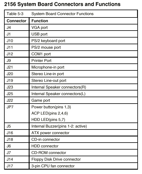 Aptiva - 2156-1xx system board layout, locations and jumpers