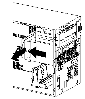 2. Release the fan assembly latch and slide the fan assembly out of the server.