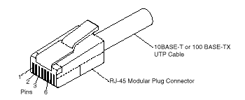 Table 7 on page 103 shows the pin-number assignments for the RJ-45 connector. These assignments apply to both 10BASE-T and 100BASE-TX devices.