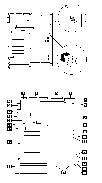 19. PCI slots 1-6 for add-in boards (slot 1 toward top, 6 toward bottom: Bus 0 = slots 1 - 3; Bus 1= slots 4 - 6)