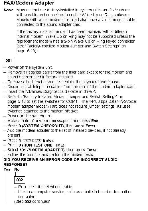 Aptiva - 2144/2168 (SL-F/H/I) Diagnostics - Fax/Modem adapter