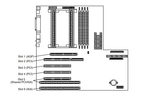 1. Slot 1 is an Accelerated Graphics Port (AGP). You can install only a special AGP graphics adapter in this slot. The server comes with an AGP graphics adapter installed in this slot.