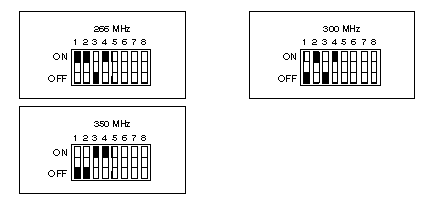2. To set the appropriate microprocessor speed, set switches 1 to 4 as shown in the following illustration. It might be helpful to use the end of a small screwdriver to set the switch.